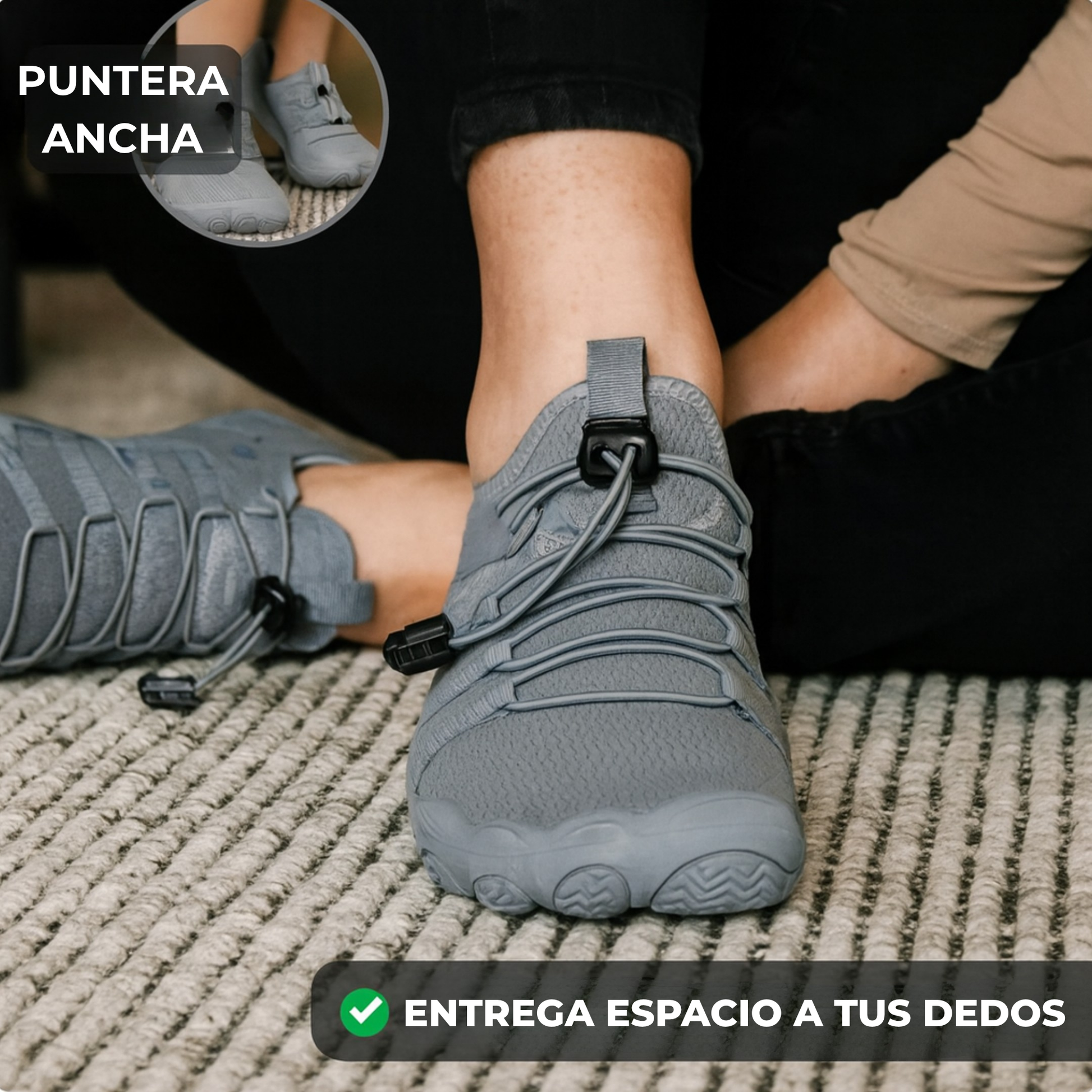 Tus zapatos estan dañando tus pies: comprimen los dedos, los deforman y sus suelas rígidas limitan tu libertad. Con Velora Pro Barefoot recuperas lo natural: espacio para que tus dedos se abran y una suela flexible que mantiene tu fuerza en cada paso.