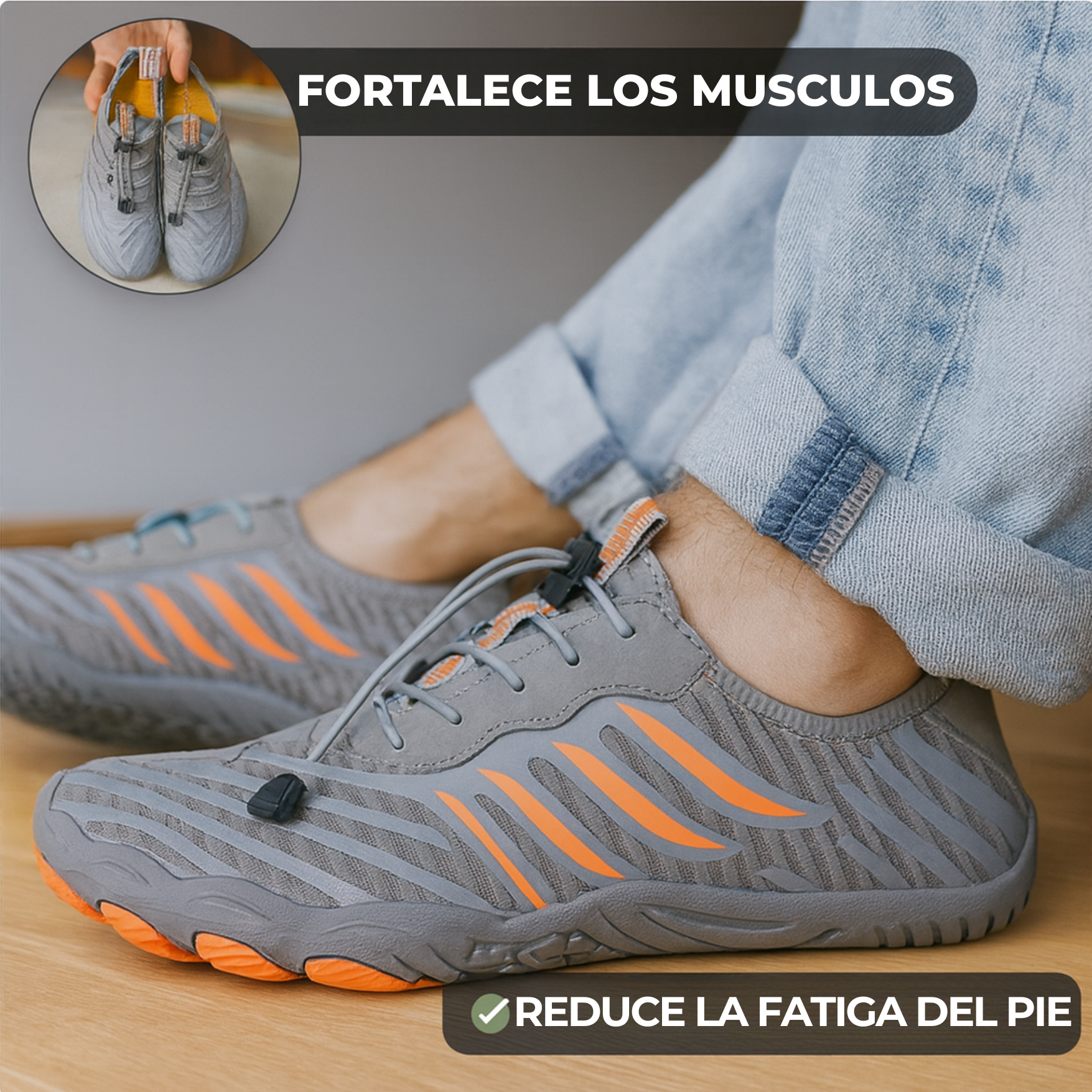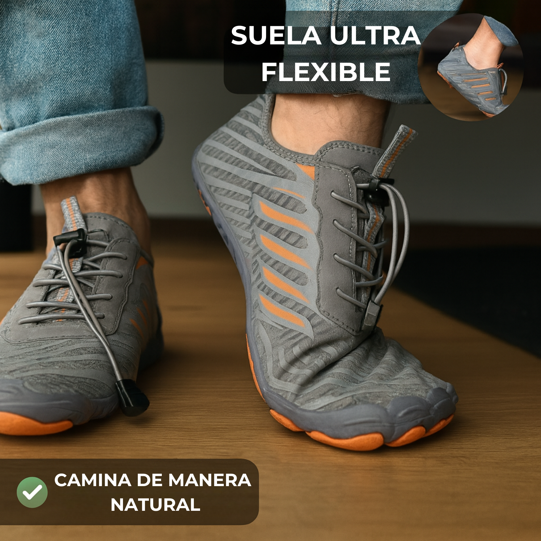 Tus zapatos estan dañando tus pies: comprimen los dedos, los deforman y sus suelas rígidas limitan tu libertad. Con Velora Pro Barefoot recuperas lo natural: espacio para que tus dedos se abran y una suela flexible que mantiene tu fuerza en cada paso.