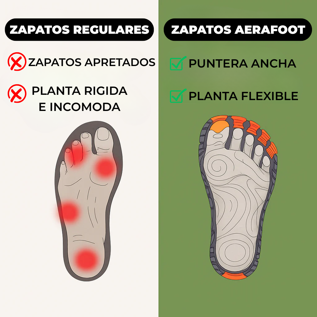Diseñados para el uso diario, los zapatos Aerafoot combinan transpirabilidad y soporte, convirtiéndose en la opción ideal para mantenerte activo, cómodo y libre de dolor.